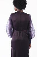 Constructed from a mid-weight Satin crepe. This dress features a darted waist on the front panel that leads to an asymmetrical high-low flare hem. Cinch in at the waist with a self-belt for a more sophisticated look.
