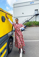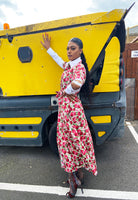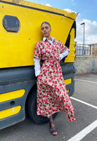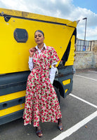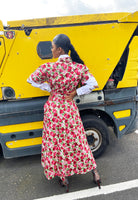 Crafted in floral cotton. This retro dress features a button down the front with a self-belt to cinch in at the waist. Pockets on both sides. opt for neutral accessories to complement the feminine aesthetics.