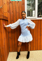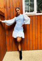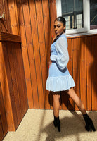 Rudolf Frill Hem Lace Mini Dress- Blue