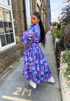 Colvin Paisley Print Tier Maxi Shirt Dress – Blue and Pink