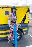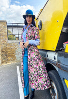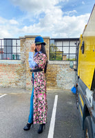 Crafted in floral cotton. This retro dress features a button down the front with a self-belt to cinch in at the waist. Pockets on both sides. opt for neutral accessories to complement the feminine aesthetics.